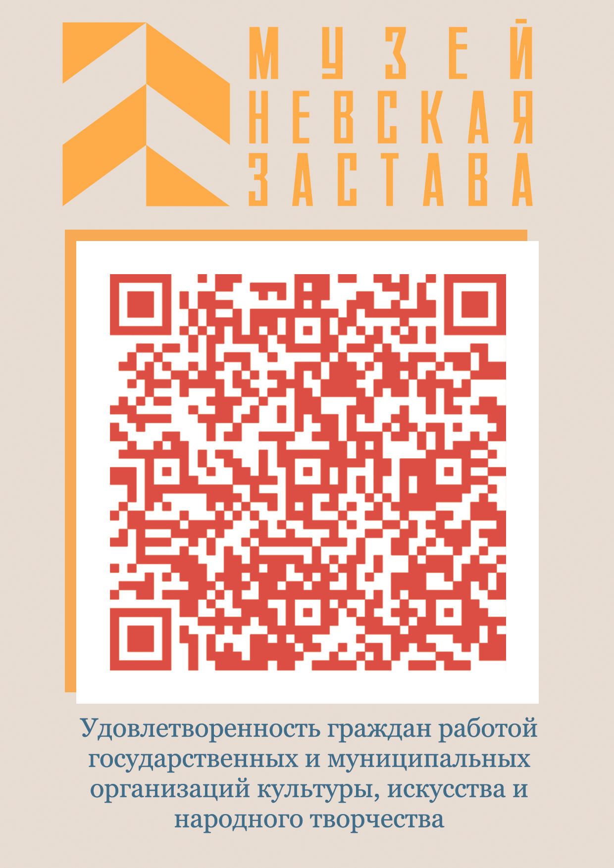 Приглашаем вас пройти опрос об удовлетворенности граждан работой государственных и муниципальных организаций культуры, искусства и народного творчества (музея «Невская застава»): https://forms.mkrf.ru/e/2579/xTPLeBU7/?ap_orgcode=117799